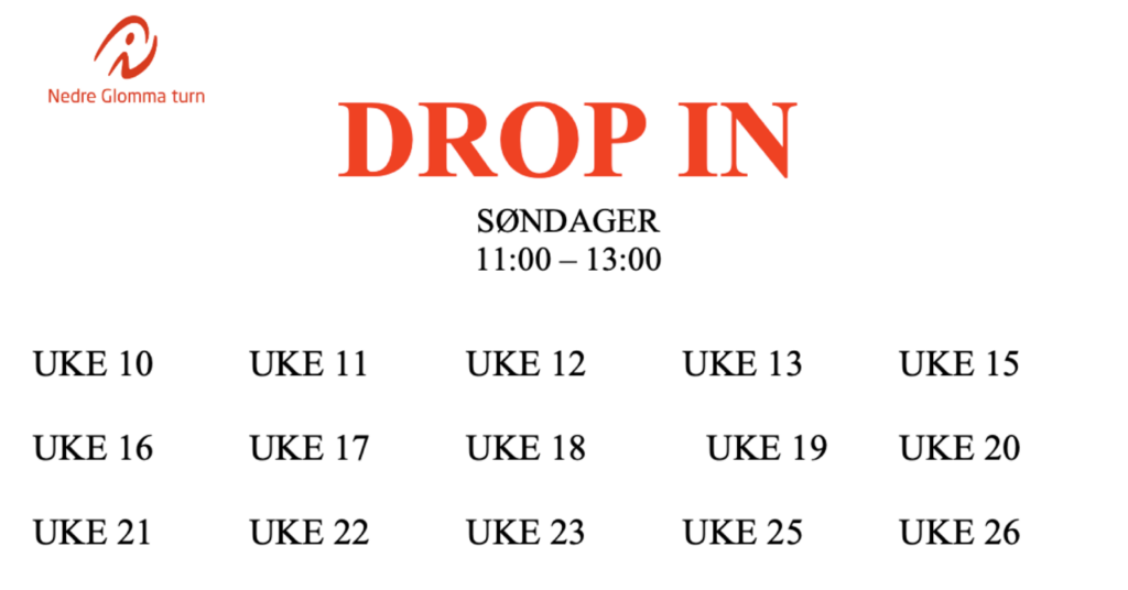 Har du lyst til å trene litt ekstra? Hver søndag fra kl. 11.00–13.00 åpner vi hallen for drop-in turn! Her kan du komme når det passer for deg innenfor tidsrommet og øve på det du selv ønsker – enten du vil finpusse ferdigheter eller bare ha det gøy med litt ekstra aktivitet.
